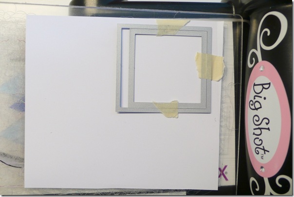 2 – Con le fustelle Sizzix tagliare: una bandierina dalle carta fantasia verde, una tag dalla carta a quadretti, due centrini della carta kraft. Utilizzare la fustella del rettangolo grande con il terzo quadrato dei Framelits per creare dodici cornici polaroid con il cartoncino bianco.