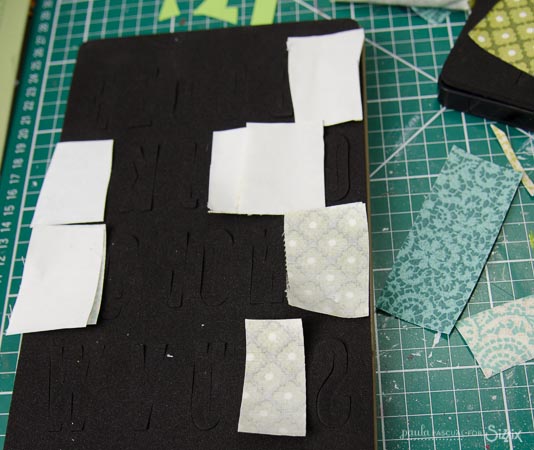 Then I proceed to cut the letters to really personalised the back of the T-Shirt. I used the fantastic Block Talk Bigz XL die. It is fantastic for fabric die cutting as well as for tradicional paper crafting.