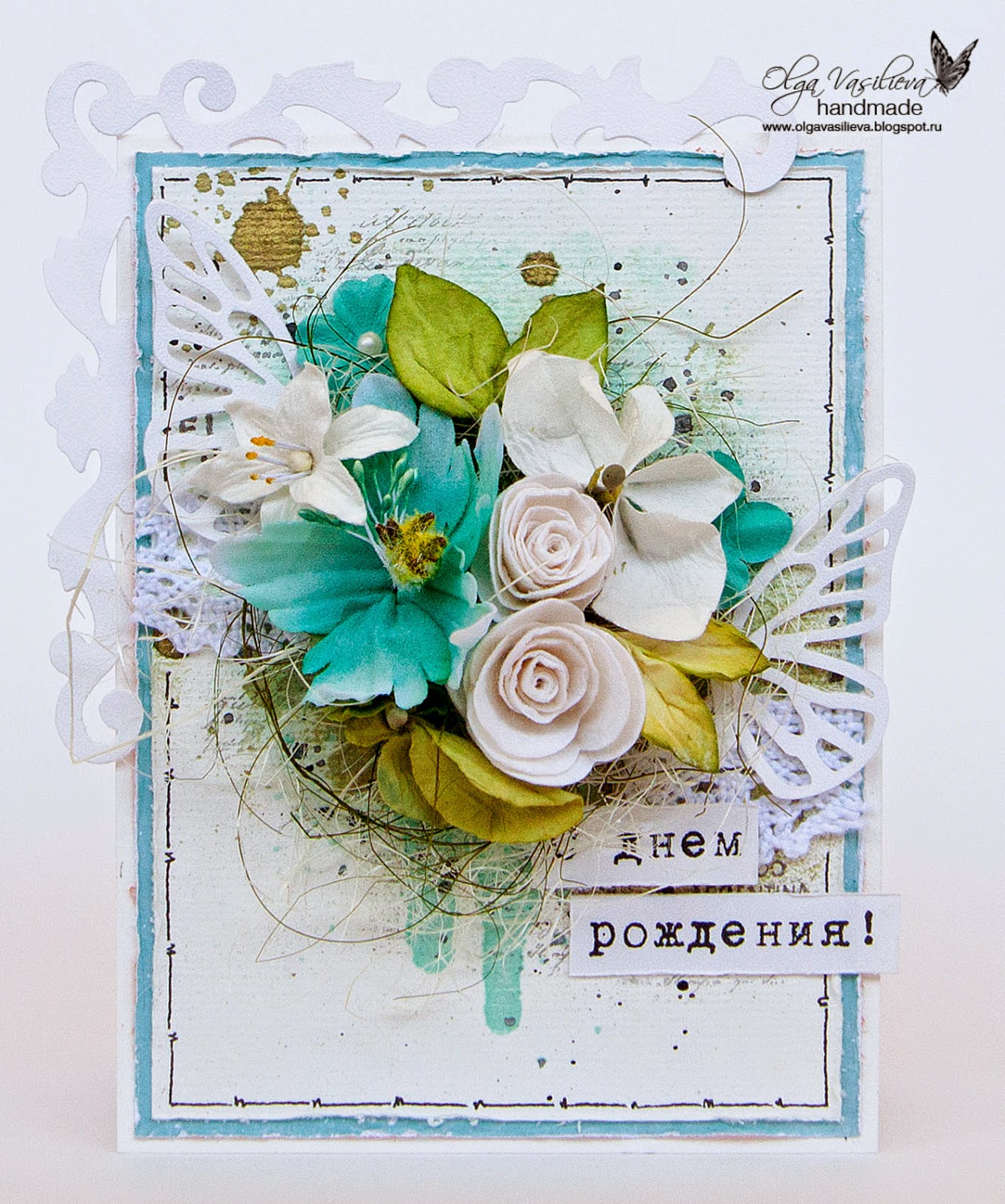 Today I would like to share with you my new card. As usually I used stamps and sprays to create the background. And Sizzix dies matched perfectly to make a complecated decoration.