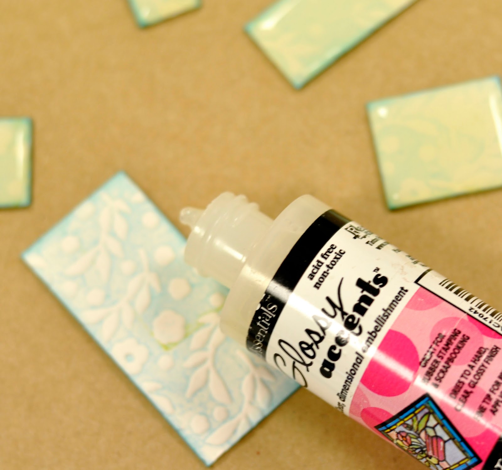 The tiles are best left until the next day before using. I started to attach them using the same glossy accents which also makes the most fantastic glue!