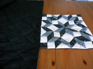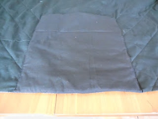 For the quilt part I have used 1.8m by 112cm wide,of a plain black and a small print, and cut a piece of wadding to match.